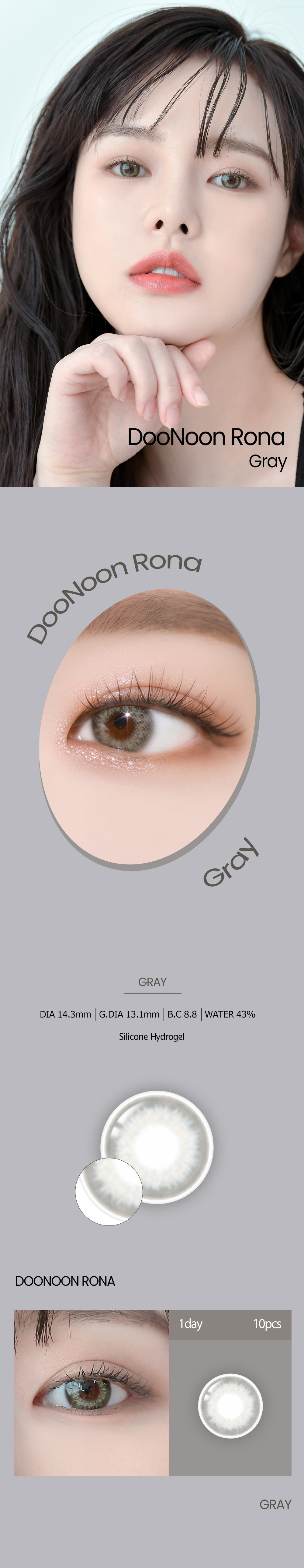 - Product: DooNoon Rona Gray Colored Contacts