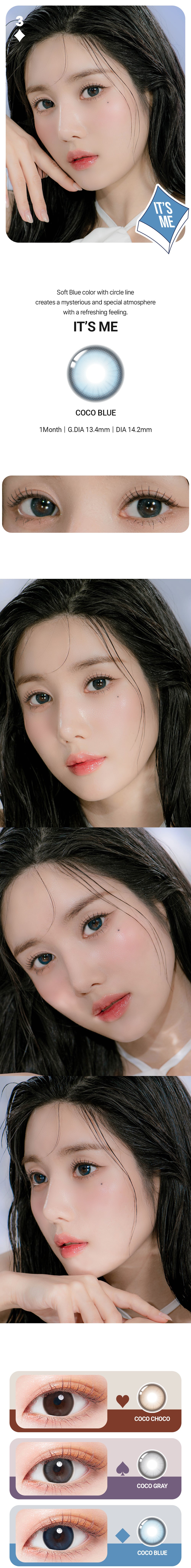 - Product: It's Me Coco Blue Colored Contacts
